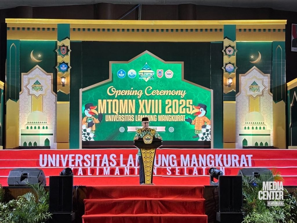 Musabaqah Tilawatil Qur’an Mahasiswa Nasional (MTQMN) ke-XVIII Tahun 2025 resmi dibuka di Auditorium Universitas Lambung Mangkurat (ULM) Banjarbaru, Senin (6/10/2025).