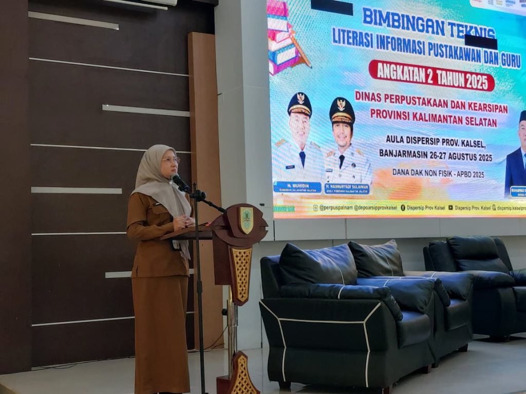 Bimtek yang berlangsung di Aula Dispersip Kalsel, Banjarmasin, Selasa (26/8/2025). Dengan diikuti 100 peserta yang terdiri atas pustakawan dinas, guru sekaligus kepala atau pengelola perpustakaan dari 13 kabupaten/kota se-Kalimantan Selatan. Kegiatan tersebut terselenggara berkat dukungan Dana Alokasi Khusus (DAK) Perpustakaan Nasional RI yang dialokasikan melalui APBD Dispersip Provinsi Kalsel.
