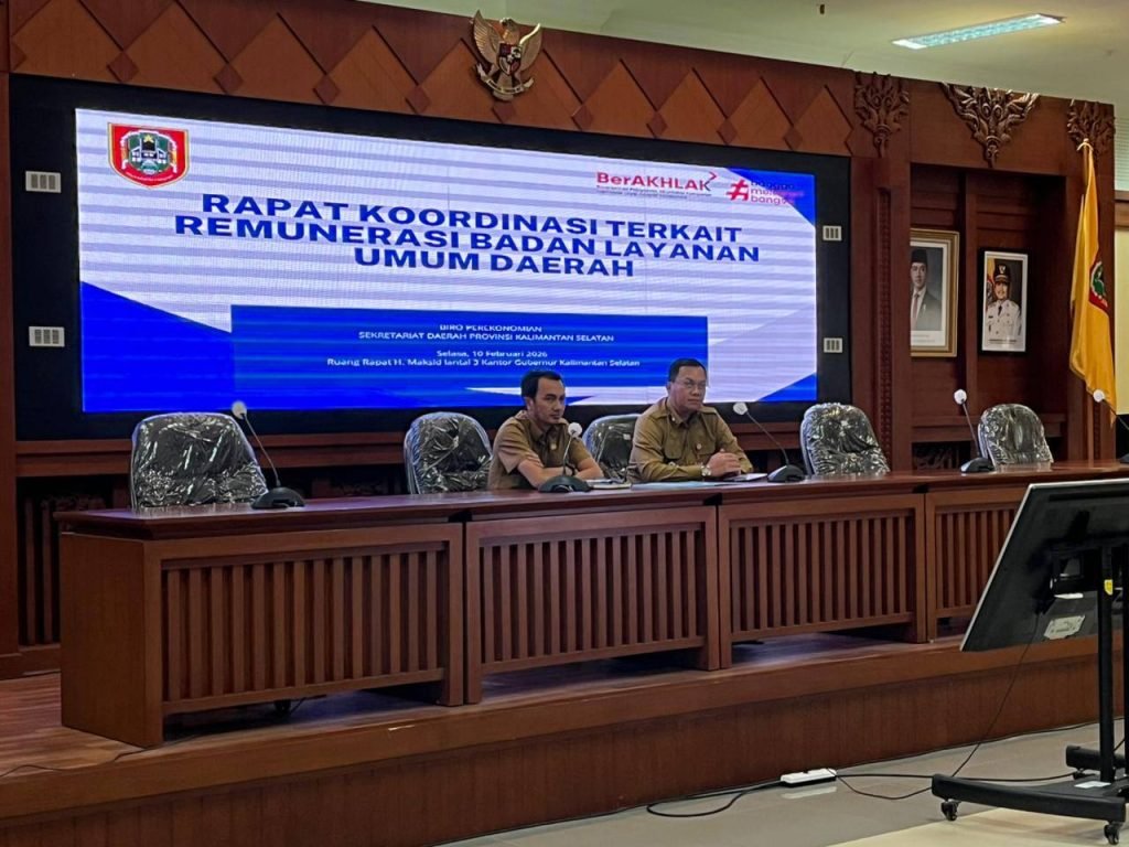Biro Perekonomian Sekretariat Daerah Provinsi Kalimantan Selatan (Kalsel) menggelar Rapat Koordinasi bersama 14 Unit Pelaksana Teknis Daerah (UPTD) dalam rangka penyesuaian dan penyempurnaan kebijakan sistem remunerasi pada Badan Layanan Umum Daerah (BLUD), sekaligus evaluasi biaya operasional dan pendapatan BLUD tahun 2025.