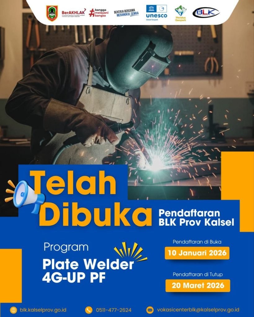 Balai Latihan Kerja (BLK) di bawah Dinas Tenaga Kerja dan Transmigrasi (Disnakertrans) Provinsi Kalimantan Selatan secara resmi membuka pendaftaran program pelatihan kerja Tahun 2026 yang didanai melalui APBD Provinsi Kalimantan Selatan.