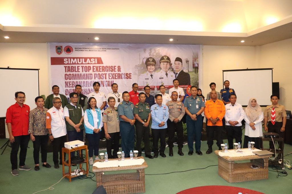 Pemerintah Provinsi Kalimantan Selatan melalui Badan Penanggulangan Bencana Daerah (BPBD) bersama forkopimda, lembaga, dan organisasi kebencanaan, hingga relawan melaksanakan Simulasi Table Top Exercise (TTX) dan Command Post Exercise (CPX) Penanggulangan Kebakaran Hutan dan Lahan (Karhutla), di salah satu hotel di Banjarbaru, Rabu (19/11/2025).