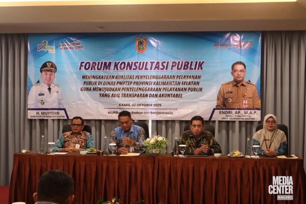 Dinas Penanaman Modal dan Pelayanan Terpadu Satu Pintu (DPMPTSP) Provinsi Kalimantan Selatan menggelar Forum Konsultasi Publik di Banjarmasin, Kamis (2/10/2025).