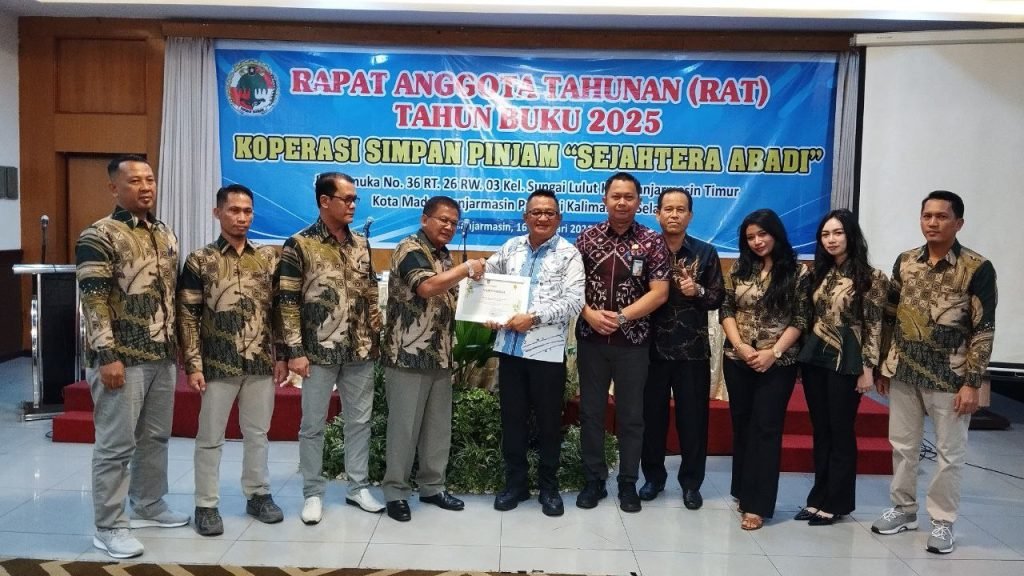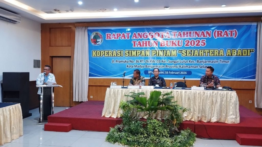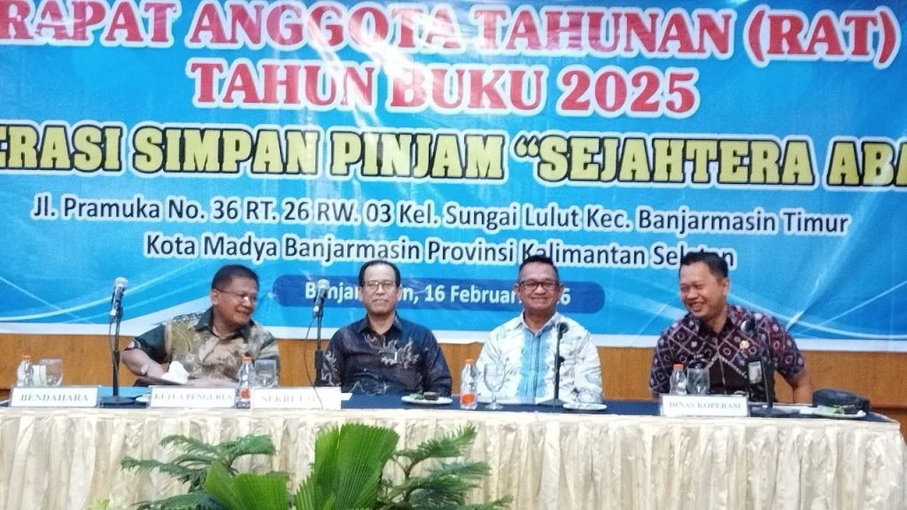 Pelaksana Tugas (Plt) Kepala Dinas Koperasi dan UKM Provinsi Kalimantan Selatan, Ahmad Bagiawan, menghadiri dan membuka secara resmi Rapat Anggota Tahunan (RAT) Tahun Buku 2025 Koperasi Simpan Pinjam (KSP) Sejahtera Abadi, di salah satu hotel di Banjarmasin, Senin (16/2/2026).