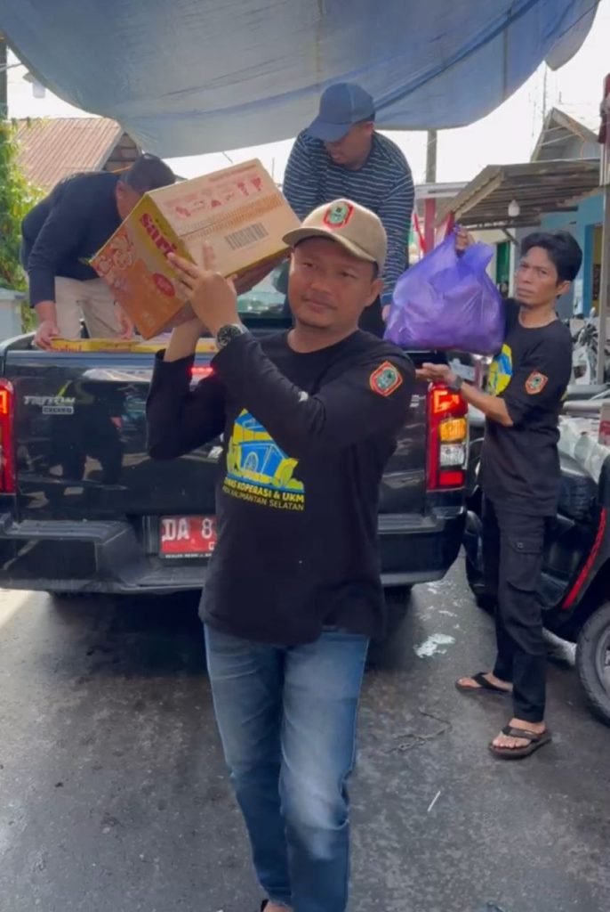 “Alhamdulillah hari ini Dinas Koperasi dan UKM Provinsi Kalimantan Selatan memberikan bantuan kepada masyarakat yang terdampak banjir di Martapura, khususnya di Kraton dan Pesayangan. Bantuan ini kami salurkan untuk dapur-dapur umum dan juga warga yang mengungsi di musala, sebagai bentuk kepedulian untuk meringankan beban masyarakat yang terkena musibah,” ujar Gusti Yanuar.