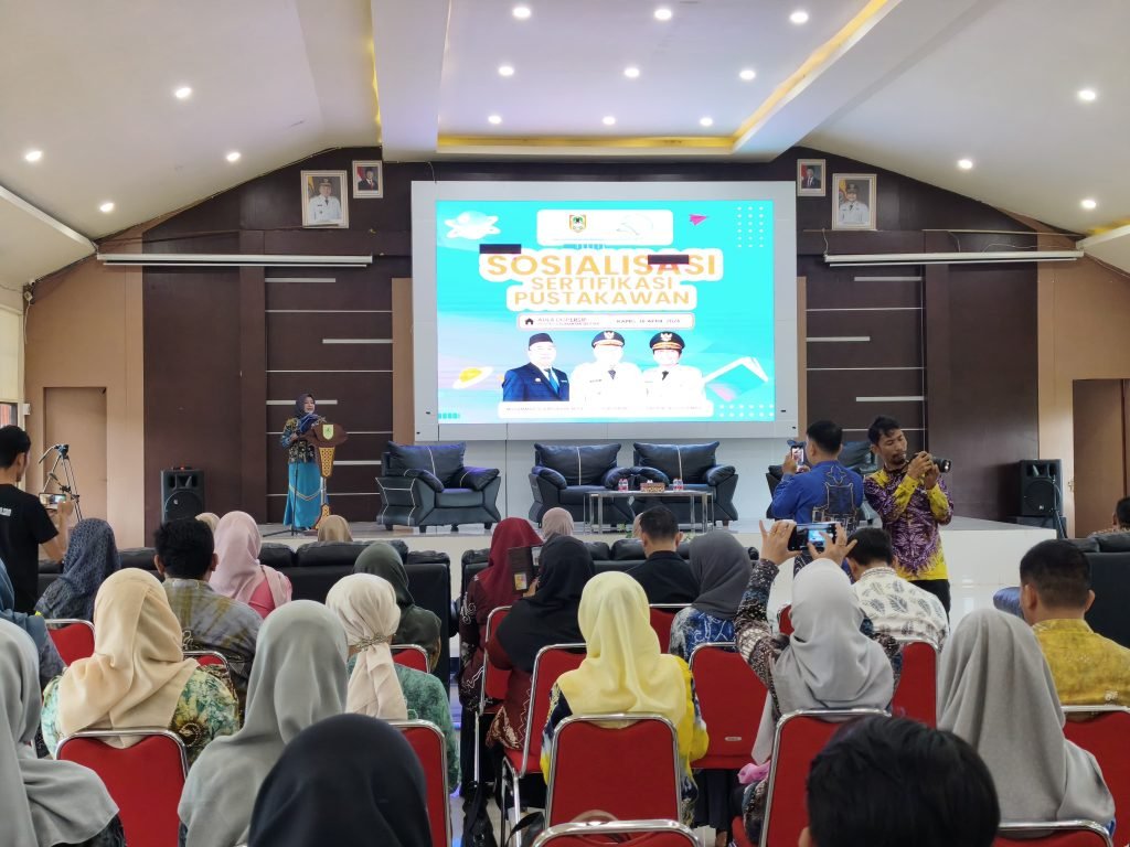 Dinas Perpustakaan dan Kearsipan (Dispersip) Provinsi Kalimantan Selatan menggelar sosialisasi sertifikasi pustakawan tingkat provinsi di Aula Dispersip Kalsel, Banjarmasin, Kamis (16/4/2026). Kegiatan ini diikuti perwakilan lembaga perpustakaan dan kearsipan kabupaten/kota serta berbagai instansi sekolah di bawah kewenangan provinsi maupun daerah.
