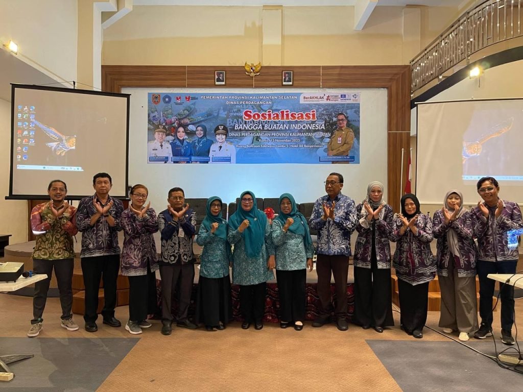 Dinas Perdagangan Provinsi Kalimantan Selatan melalui Bidang Pengembangan Perdagangan Dalam Negeri Seksi Penggunaan dan Pemasaran Produk Dalam Negeri, menggelar Sosialisasi Bangga Buatan Indonesia (BBI) di salah satu hotel berbintang di Banjarmasin, Kamis (13/11/2025)