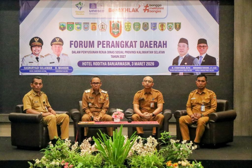 Dinas Sosial Provinsi Kalimantan Selatan menggelar forum Perangkat Daerah sebagai momentum merumuskan langkah-langkah kebijakan dalam menjawab berbagai isu sosial di daerah. Forum ini menghadirkan narasumber dari unsur Biro Umum, Kementerian Sosial RI, Bappeda Kalimantan Selatan, serta Kepala Dinas Sosial Provinsi Kalsel.