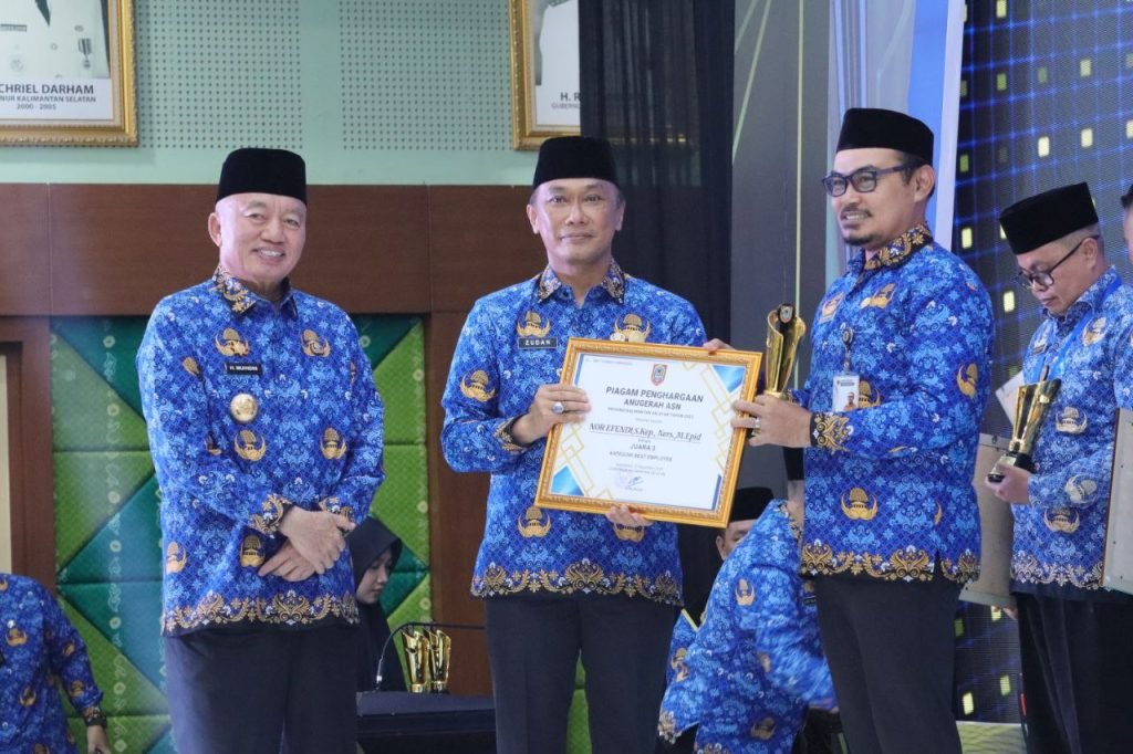 Pemerintah Provinsi Kalimantan Selatan (Kalsel) secara resmi menyerahkan penghargaan Anugerah ASN Tahun 2025 sebagai bentuk apresiasi bagi aparatur yang menunjukkan dedikasi dan inovasi luar biasa. Penghargaan ini diserahkan langsung oleh Gubernur Kalsel, H. Muhidin, bersama Kepala Badan Kepegawaian Negara (BKN) RI, Zudan Arif Fakrulloh, di Gedung Idham Chalid, Banjarbaru, Selasa (23/12/2025).