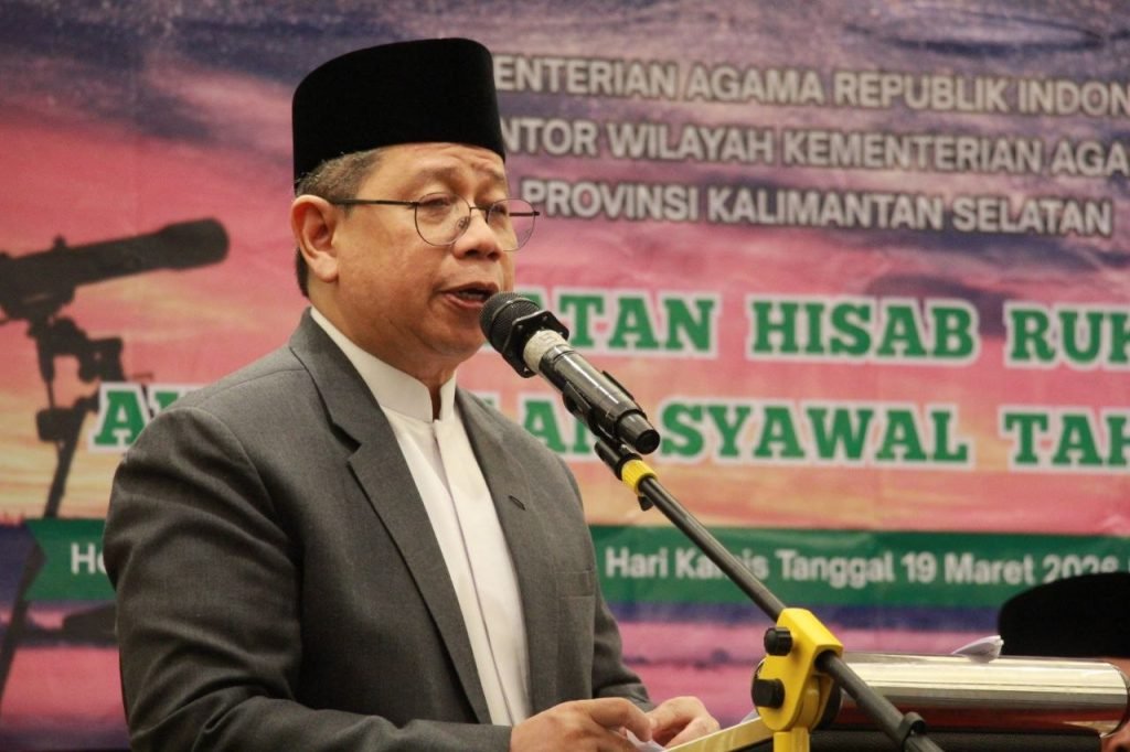 Kepala Kantor Wilayah Kementerian Agama (Kanwil Kemenag) Kalimantan Selatan, Muhammad Tambrin, menyampaikan apresiasi Gubernur Kalimantan Selatan, H. Muhidin, terhadap pelaksanaan kegiatan pemantauan hilal (rukyatul hilal) awal bulan Syawal 1447 Hijriah yang dilaksanakan di Banjarmasin, Kamis (19/3/2026) sore.