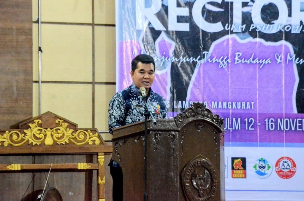 Gubernur Kalsel H. Muhidin, melalui Staf Ahli Gubernur Bidang Ekonomi dan Pembangunan, Miftahul Chair, menyampaikan apresiasi setinggi-tingginya kepada Universitas Lambung Mangkurat (ULM) dan seluruh panitia atas terselenggaranya Kejuaraan Pencak Silat PSHT Rektor Cup 7 Tingkat Nasional Tahun 2025.