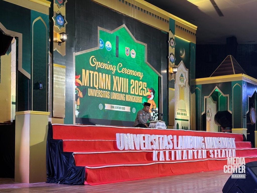 Gubernur Kalimantan Selatan, H. Muhidin melalui Asisten Administrasi Umum, Dinansyah menghadiri pembukaan Musabaqah Tilawatil Qur’an Mahasiswa Nasional (MTQMN) XVIII Tahun 2025 yang diselenggarakan di Auditorium Universitas Lambung Mangkurat (ULM) Banjarbaru, Senin (6/10/2025).