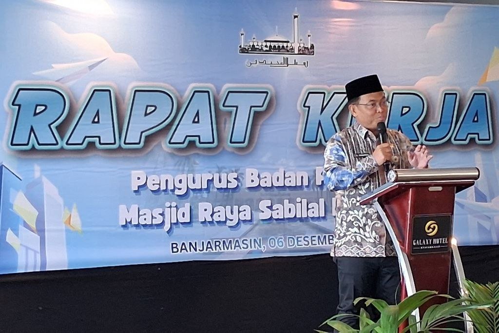 Pesan tersebut disampaikan saat membuka Rapat Kerja Badan Pengelola Masjid Raya Sabilal Muhtadin di salah satu hotel di Banjarmasin, Sabtu (6/12/2025).