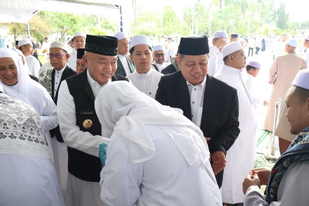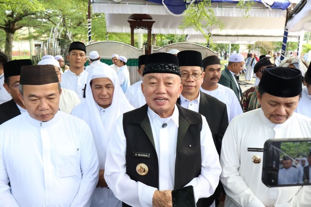 Didampingi Wakil Gubernur Hasnuryadi Sulaiman, Sekretaris Daerah Kalsel Muhammad Syarifuddin, serta Kepala Kanwil Kementerian Agama Kalsel Muhammad Tambrin, Muhidin mengungkapkan bahwa pelaksanaan Salat Idulfitri tahun ini dihadiri jamaah dalam jumlah besar hingga hampir memenuhi seluruh area masjid.