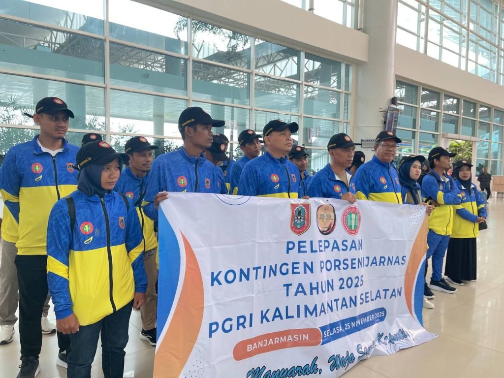 Gubernur Kalimantan Selatan (Kalsel), H. Muhidin secara resmi melepas kontingen Persatuan Guru Republik Indonesia (PGRI) Kalsel yang akan berlaga pada Pekan Olahraga, Seni, dan Pembelajaran Tingkat Nasional (PORSENIJARNAS) 2025 di Bandung, Jawa Barat, 25–28 November 2025.