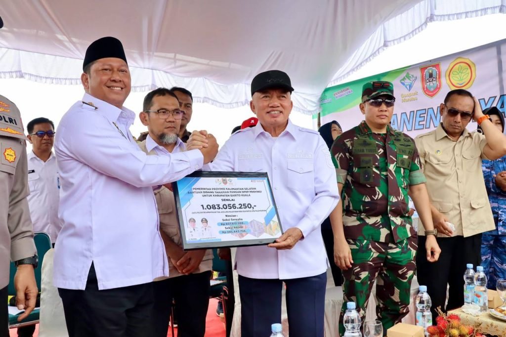 Pada kesempatan tersebut, Gubernur Kalsel juga menyerahkan bantuan sektor pertanian dari APBD Provinsi Kalsel senilai hampir Rp2,5 miliar, termasuk dukungan pengelolaan tanaman pangan, hortikultura, serta subsidi pupuk lebih dari 20 ribu ton untuk Kabupaten Barito Kuala.
