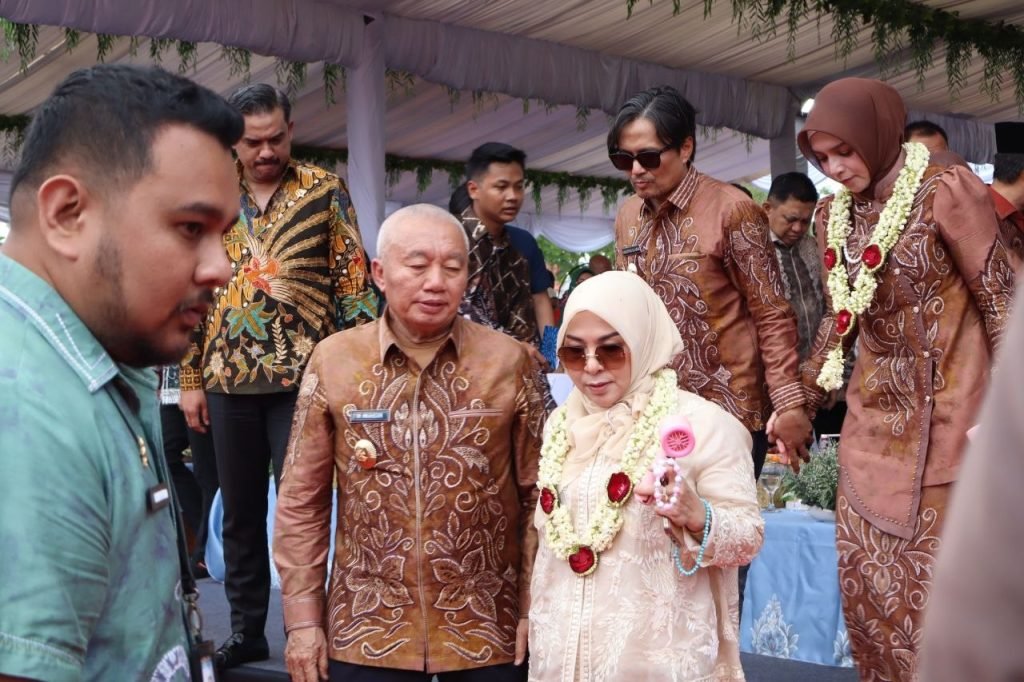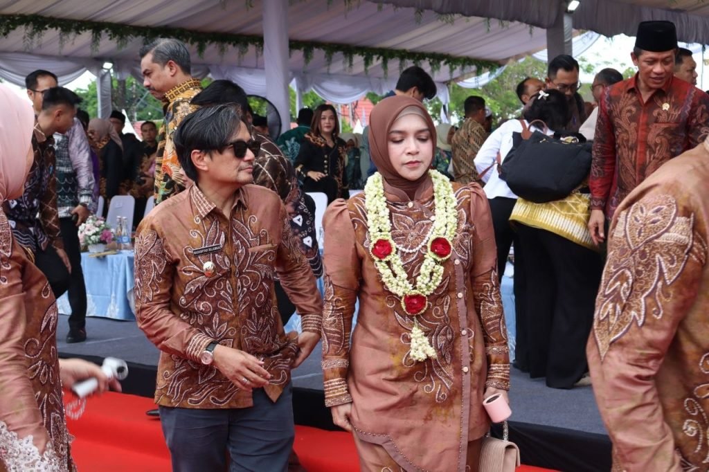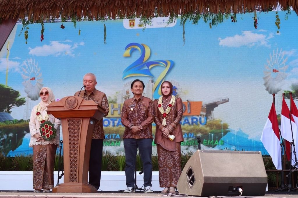 Gubernur Kalimantan Selatan, Muhidin, didampingi Wakil Gubernur Hasnuryadi Sulaiman beserta istri masing-masing, menghadiri peringatan Hari Jadi ke-27 Kota Banjarbaru di Lapangan Murjani, Banjarbaru, Senin (20/4/2026).