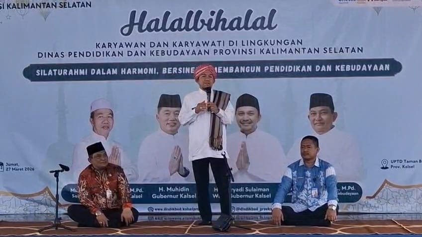 ​Kepala Dinas Pendidikan dan Kebudayaan (Disdikbud) Provinsi Kalimantan Selatan, Abdul Rochim, menekankan pentingnya menjaga silaturahmi serta memperkuat kerja sama di lingkungan pendidikan pasca libur Idulfitri. Hal tersebut disampaikannya dalam kegiatan halal bi halal yang dihadiri jajaran Disdikbud Kalsel dan Unit Pelaksana Teknis (UPT), usai masa libur Lebaran, di Taman Budaya Kalsel, Banjarmasin, Jum’at (27/3/2026).