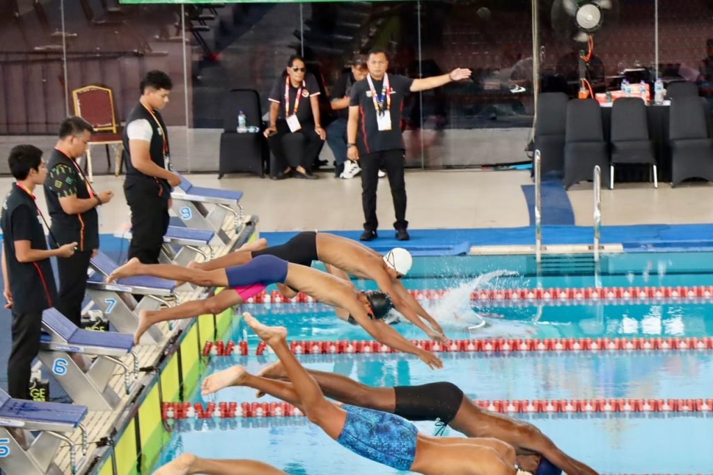 Pebriadin mendatangi venue pertandingan cabang olahraga renang di Stadion Akuatik Gelora Bung Karno (GBK), Rabu (5/11/2025) sore.