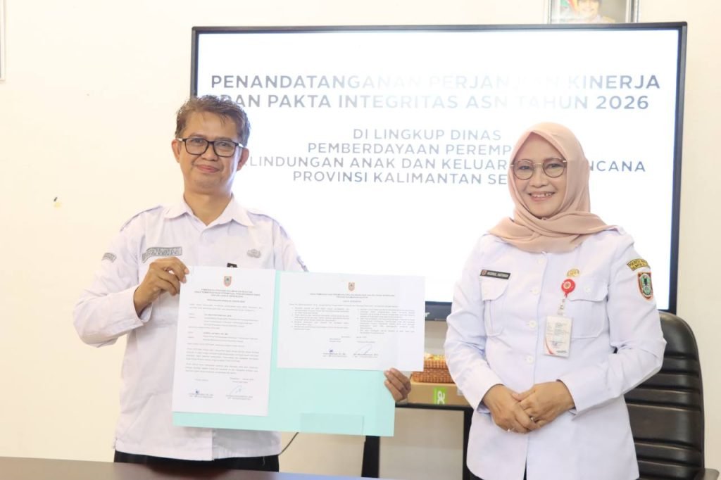 Dinas Pemberdayaan Perempuan, Perlindungan Anak, dan Keluarga Berencana (DPPPAKB) Provinsi Kalimantan Selatan melaksanakan penandatanganan Perjanjian Kinerja (PK) dan Pakta Integritas Tahun 2026 bersama seluruh jajaran pejabat struktural serta UPTD Perlindungan Perempuan dan Anak (PPA). Kegiatan ini menjadi wujud komitmen bersama dalam meningkatkan kinerja organisasi serta mendukung visi dan misi Kepala Daerah Provinsi Kalimantan Selatan.