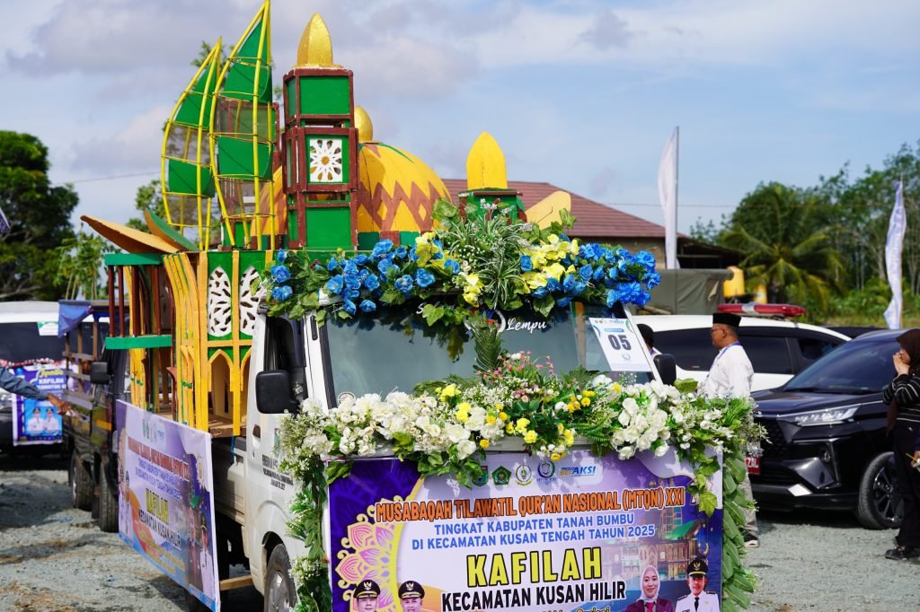 BATULICIN – Pawai ta’aruf mobil hias semarakkan Musabaqah Tilawatil Qur’an Nasional (MTQN) ke-21 Tingkat Kabupaten Tanah Bumbu, Minggu (16/11/2025), di Kecamatan Kusan Tengah.