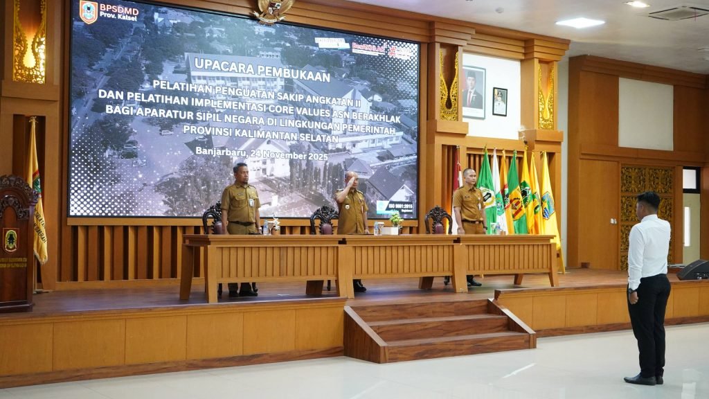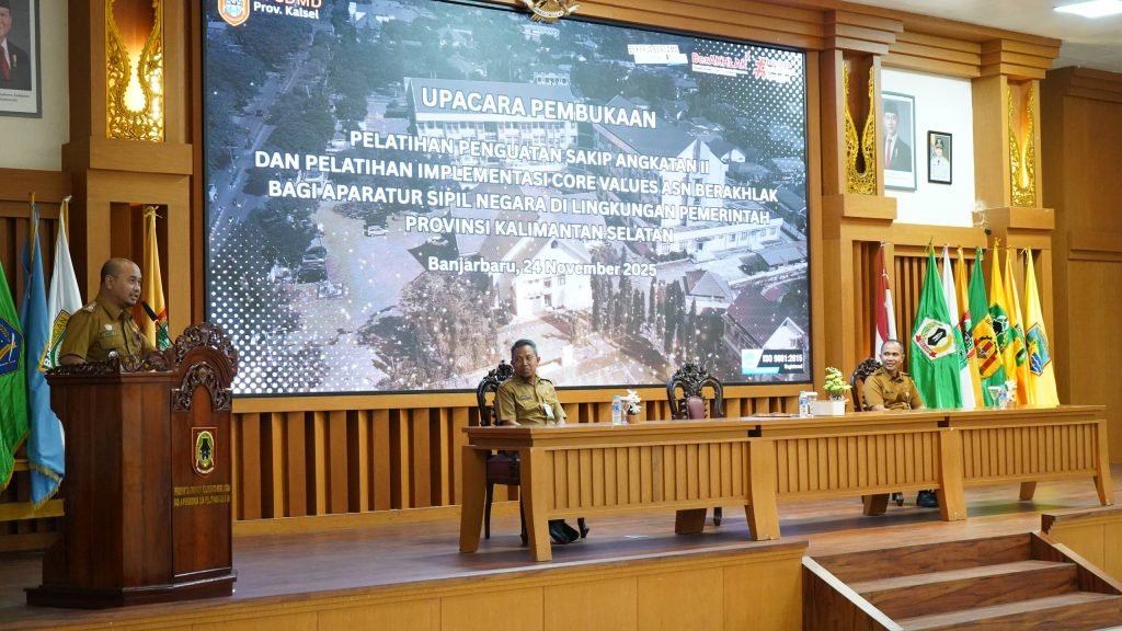 Pemerintah Provinsi Kalimantan Selatan melalui Badan Pengembangan Sumber Daya Manusia Daerah (BPSDMD) Provinsi Kalimantan Selatan resmi membuka Pelatihan Implementasi Core Value BerAKHLAK dan Penguatan SAKIP Angkatan II Tahun 2025. Kegiatan ini dibuka di Aula Kampus I BPSDMD Provinsi Kalsel, Senin (24/11/2025).