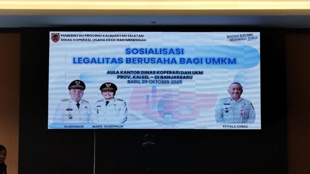 Hal tersebut disampaikan Kepala Dinas Koperasi dan UKM Provinsi Kalsel, Gusti Yanuar Noor Rifai, melalui Kepala Bidang Usaha dan Pemasaran, Refiansyah, saat membuka kegiatan Sosialisasi Legalitas Berusaha bagi UMKM Tahun 2025 di Aula Kantor Dinas Koperasi dan UKM Provinsi Kalsel, Banjarbaru, Rabu (29/10/2025).