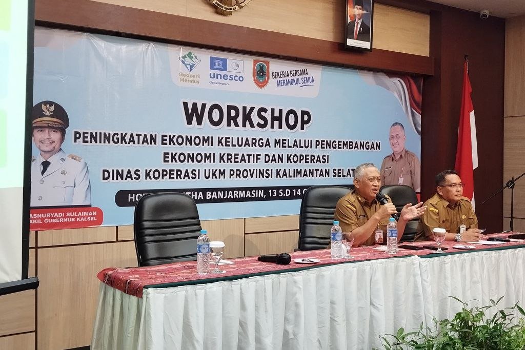 Pemerintah Provinsi Kalimantan Selatan terus berupaya memperkuat ekonomi keluarga melalui pemberdayaan koperasi dan pelaku usaha mikro, kecil, dan menengah (UMKM). Hal ini disampaikan oleh Kepala Dinas Koperasi dan UKM Provinsi Kalimantan Selatan, Gusti Yanuar Noor Rifai, saat memberikan paparan dalam Workshop Peningkatan Ekonomi Keluarga melalui Pengembangan Ekonomi Kreatif dan Koperasi di salah satu hotel di Banjarmasin, Selasa (14/10/2025).