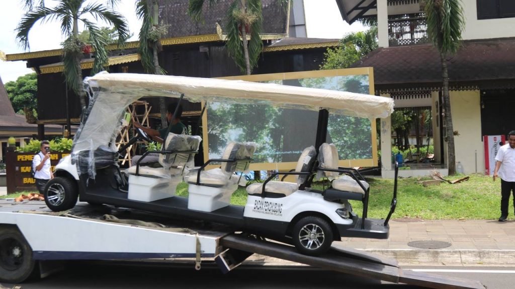 Mobil buggy yang diserahkan tahun ini telah dilengkapi penutup hujan dan akan diprioritaskan untuk mobilitas pimpinan dan tamu resmi, sementara sepeda listrik dapat digunakan pengunjung untuk berkeliling area anjungan.