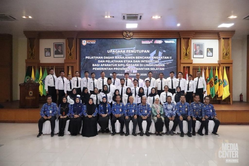 Pemerintah Provinsi Kalimantan Selatan melalui Badan Pengembangan Sumber Daya Manusia Daerah (BPSDMD) Provinsi Kalimantan Selatan secara resmi menutup dua kegiatan pelatihan, yakni Pelatihan Dasar Manajemen Bencana Angkatan II dan Pelatihan Etika dan Integritas bagi Aparatur Sipil Negara (ASN) di lingkungan Pemerintah Provinsi Kalsel. Penutupan kegiatan tersebut dilaksanakan di Aula Kampus I BPSDMD Provinsi Kalsel, Banjarbaru, Jumat (17/10/2025).