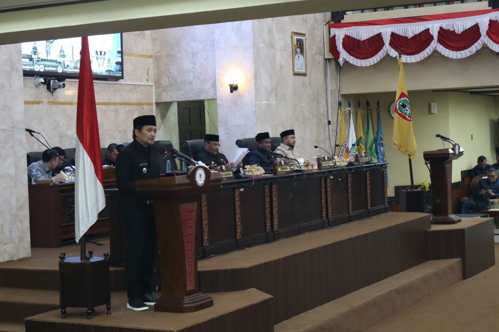 Agenda tersebut merupakan Penjelasan Gubernur Kalimantan Selatan atas tiga Raperda, yakni perubahan Perda Nomor 1 Tahun 2024 tentang Pajak dan Retribusi Daerah, Raperda tentang Tanggung Jawab Sosial dan Lingkungan Perusahaan (TJSLP), serta perubahan Perda Nomor 5 Tahun 2018 terkait pengelolaan sumber daya air.