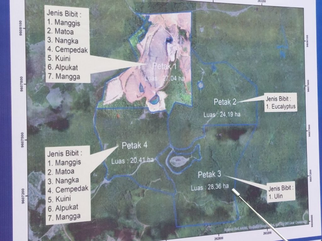 Untuk kegiatan penanaman, seluas 100 hektare dari total 300 hektare lahan Pemprov Kalsel menjadi lokasi pelaksanaan. Area tersebut dibagi menjadi empat blok: dua blok untuk tanaman buah-buahan seperti matoa, manggis, cempedak, dan alpukat; satu blok khusus tanaman ulin seluas sekitar 28 hektare; serta satu blok untuk tanaman eucalyptus.
