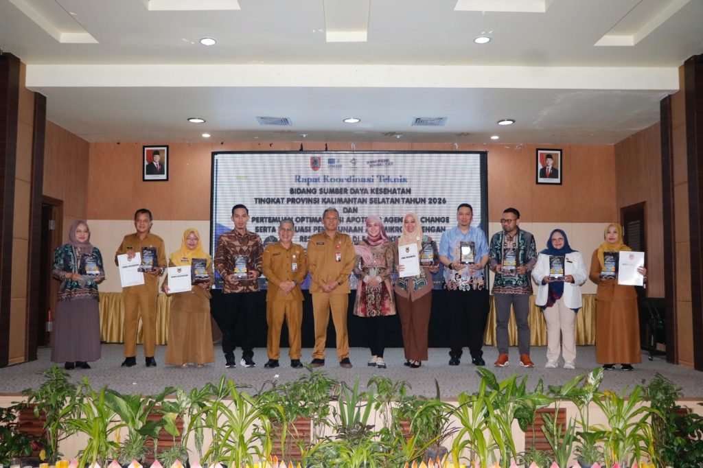 Dinas Kesehatan Provinsi Kalimantan Selatan menggelar “Pertemuan Rapat Koordinasi Teknis Program Sumber Daya Manusia Kesehatan Tingkat Provinsi Kalimantan Selatan Tahun 2026” yang dirangkaikan dengan Pertemuan Optimalisasi Apoteker sebagai Agent of Change serta Evaluasi Penggunaan Antimikroba dengan Resep Dokter di Fasilitas Pelayanan Kesehatan (Fasyankes).