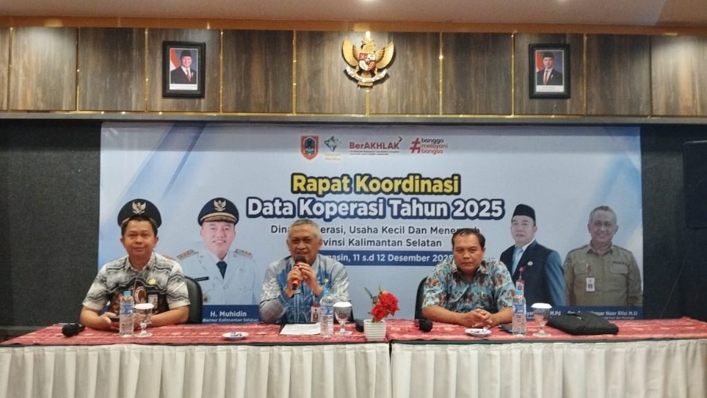Dinas Koperasi, Usaha Kecil dan Menengah Provinsi Kalimantan Selatan resmi membuka Rapat Koordinasi Data Koperasi Tahun 2025, yang digelar selama dua hari, 11–12 Desember 2025, di salah satu hotel di Banjarmasin. Kegiatan ini diikuti oleh pejabat koperasi kabupaten/kota serta para petugas Online Data System (ODS) dari seluruh Kalimantan Selatan, dengan total peserta sebanyak 26 orang.