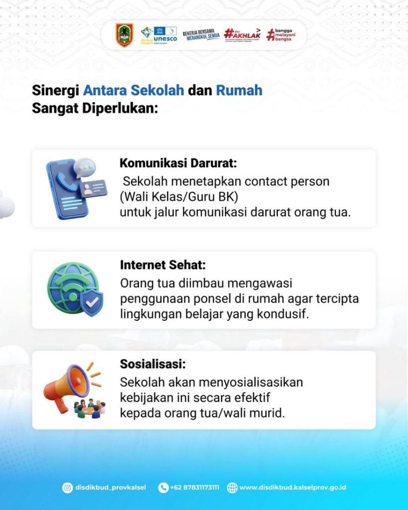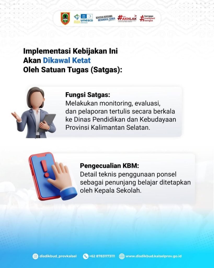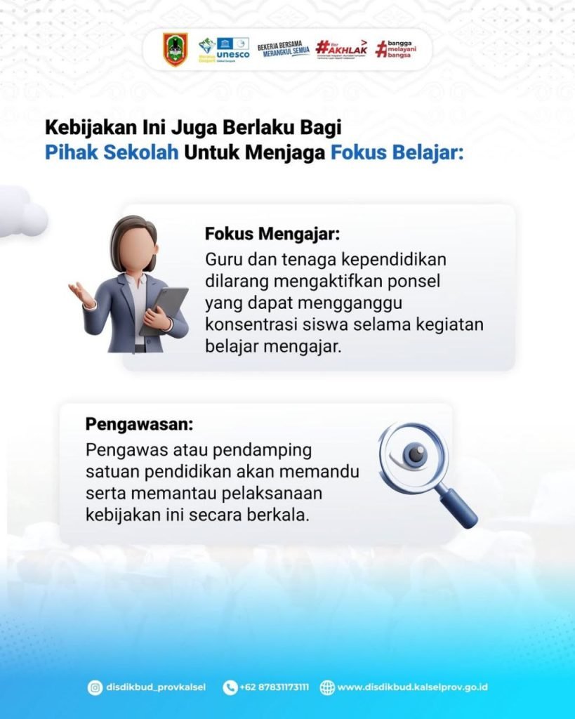 Kepala Disdikbud Kalsel, Galuh Tantri Narindra, melalui Kepala Bidang Pembinaan SMA, Dedy Hidayat, mengatakan kebijakan ini merupakan langkah strategis untuk meningkatkan konsentrasi siswa selama proses belajar mengajar berlangsung.