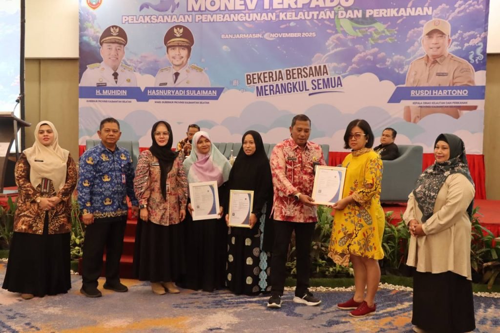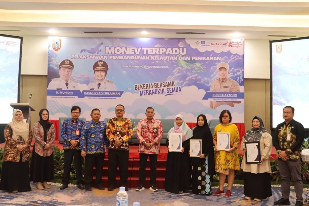 Dinas Kelautan dan Perikanan (Dislautkan) Provinsi Kalimantan Selatan melaksanakan Monitoring dan Evaluasi (Monev) Terpadu Pelaksanaan Pembangunan Kelautan dan Perikanan sebagai langkah strategis untuk meningkatkan sinergi antara Pemerintah Provinsi dan Pemerintah Kabupaten/Kota di bidang kelautan dan perikanan. Kegiatan ini menghadirkan perwakilan dari berbagai instansi terkait, termasuk Kepala Biro Perencanaan Kementerian Kelautan dan Perikanan, BPKD Provinsi Kalimantan Selatan, serta jajaran Inspektorat.