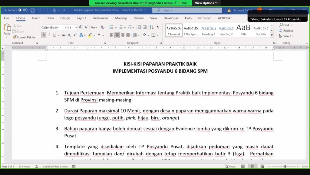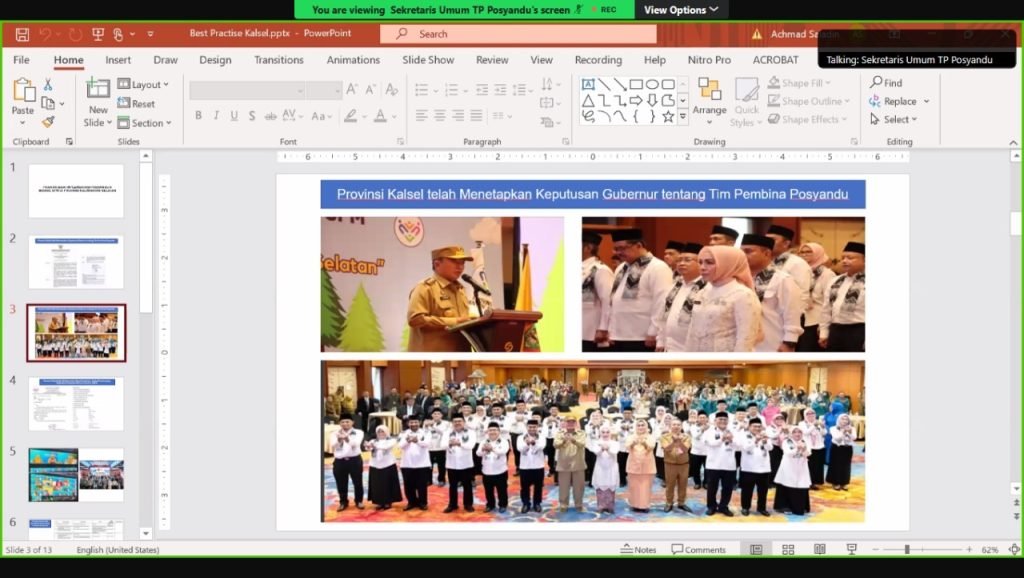 Tim Pembina Pos Pelayanan Terpadu (TP Posyandu) Provinsi Kalimantan Selatan (Kalsel) menghadiri Rapat Persiapan dalam rangka pelaksanaan Rapat Koordinasi Nasional (Rakornas) Posyandu Tahun 2025. Rapat persiapan ini diselenggarakan oleh TP Posyandu Pusat melalui media daring Zoom Meeting, Banjarbaru, Jum’at (22/08/2025).