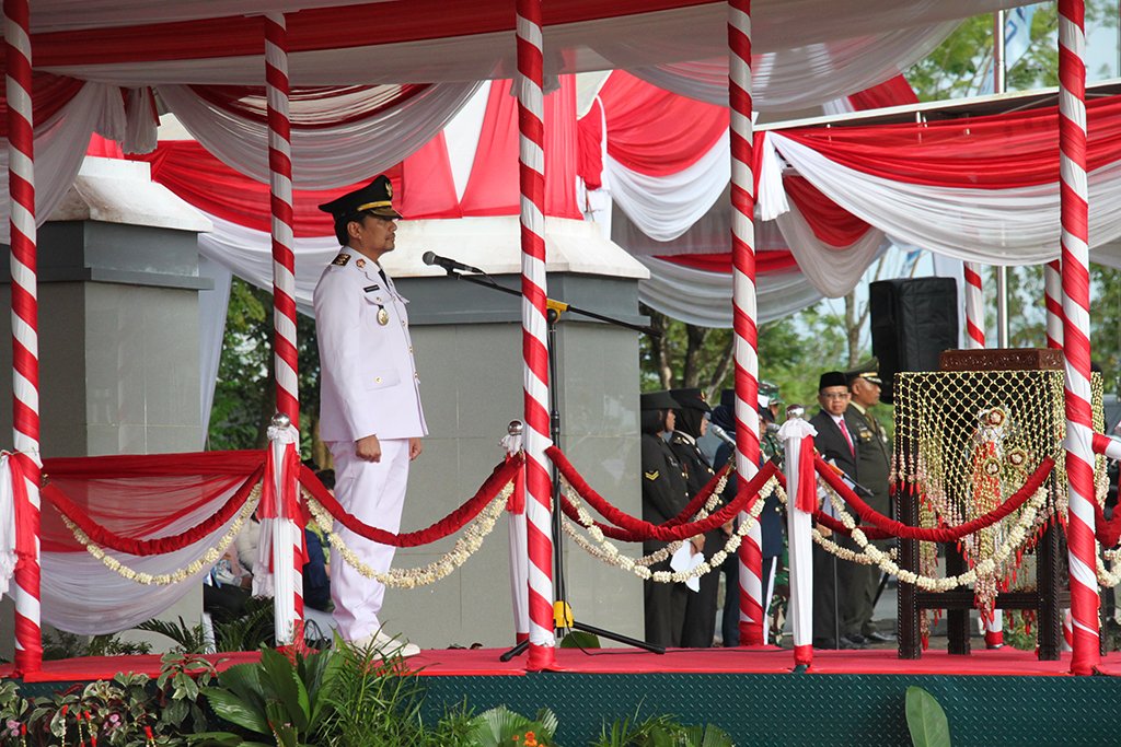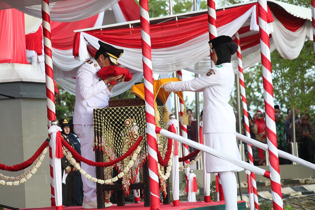 Hasnuryadi menyampaikan rasa syukur atas kelancaran jalannya prosesi penurunan bendera merah putih.