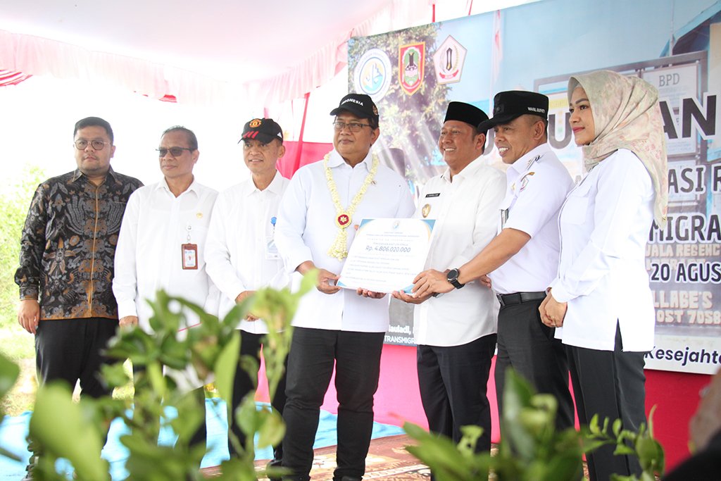 Pada kesempatan tersebut, Wamen menyerahkan bantuan senilai Rp4,8 miliar untuk pembangunan jalan usaha tani, jalan desa, serta renovasi sarana pendidikan di kawasan transmigrasi Cahaya Baru. Ia menekankan, bantuan ini merupakan wujud perhatian pemerintah pusat terhadap pengembangan ekonomi dan kesejahteraan masyarakat transmigran.