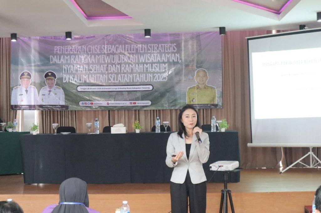 Hal tersebut disampaikan Kepala Dinas Pariwisata Kalsel, Iwan Fitriady, melalui Kepala Bidang Pengembangan Destinasi, Yosalvina Yovani, dalam Workshop Penerapan CHSE sebagai Elemen Strategis dalam Rangka Mewujudkan Wisata Aman, Nyaman, Sehat, dan Ramah Muslim di Kalimantan Selatan Tahun 2025 yang digelar di Kabupaten Tabalong Selasa (28/10) kemarin.