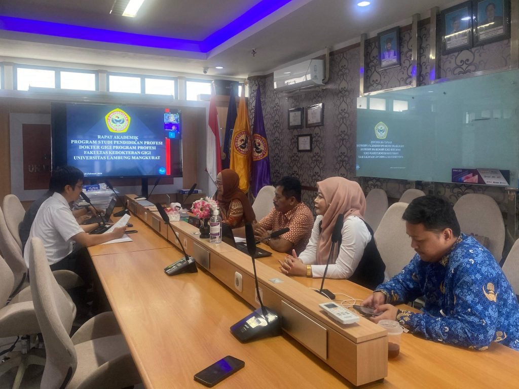 Usai pelaksanaan yudisium, kegiatan dilanjutkan dengan Rapat Akademik Program Studi Pendidikan Profesi Dokter Gigi yang difokuskan pada penguatan koordinasi serta evaluasi pelaksanaan pendidikan klinik bagi mahasiswa profesi dokter gigi yang menjalani praktik di RSGM sebagai rumah sakit pendidikan.